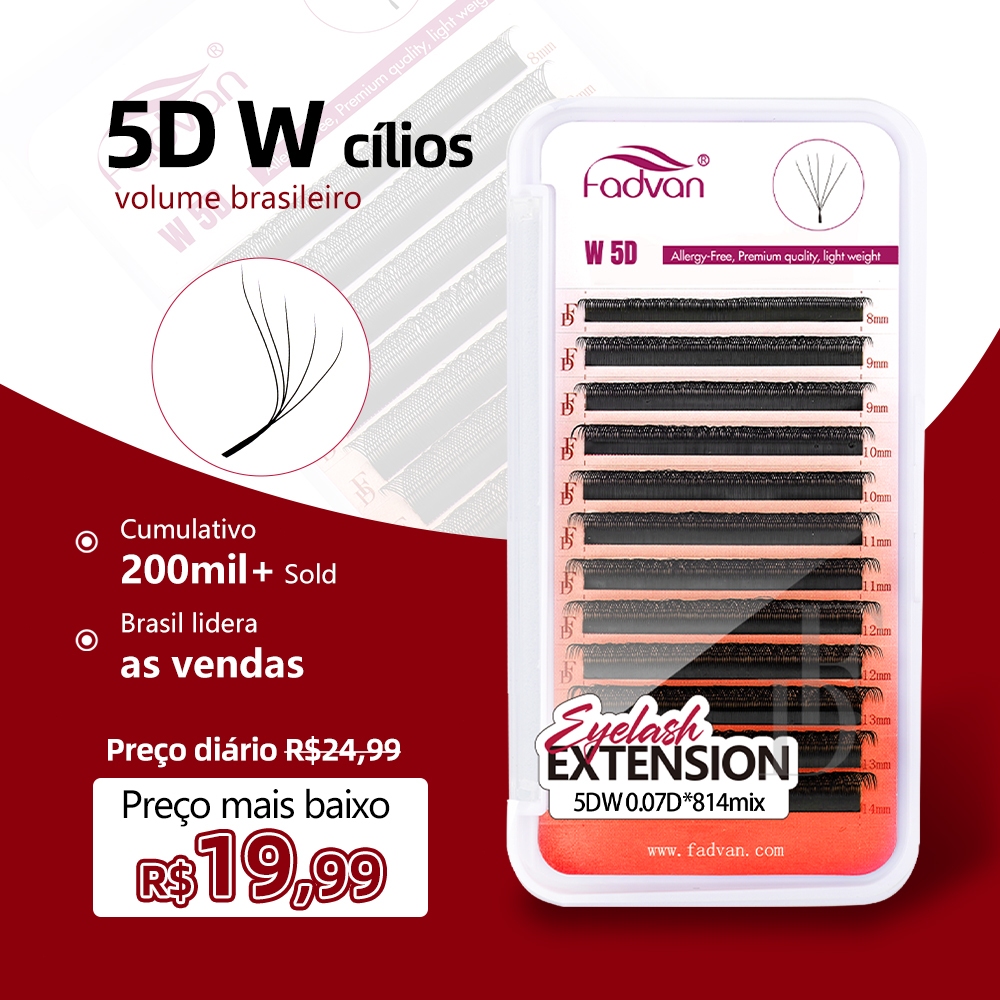 🔥 Fadvan 5D W Extensões De Cílios Em Forma De 0.07 C/D Faux Mink Natural Pestanas Profissionais Suaves